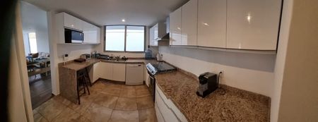Nivel 1: Área familiar con terraza, sala comedor, cocina equipada con barra de granito, alaena, cuarto de lavado y planchado.