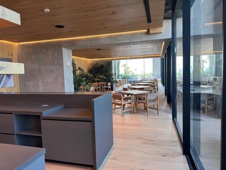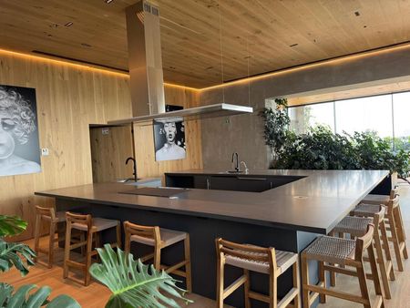 Conecta con la comunidad en un parque de doble altura, disfruta de la cafetería, el área de coworking, el salón de jóvenes y el studio kitchen, todo con vistas impresionantes de la ciudad.